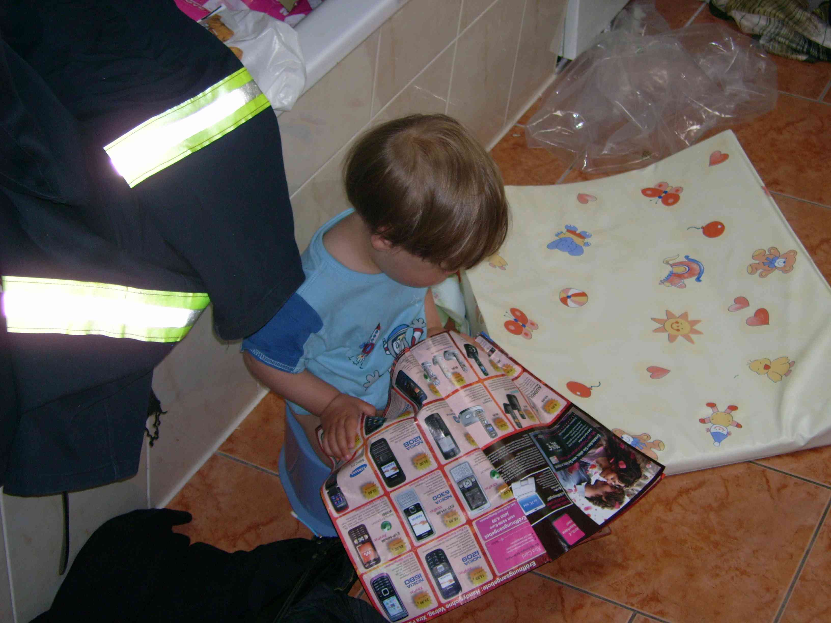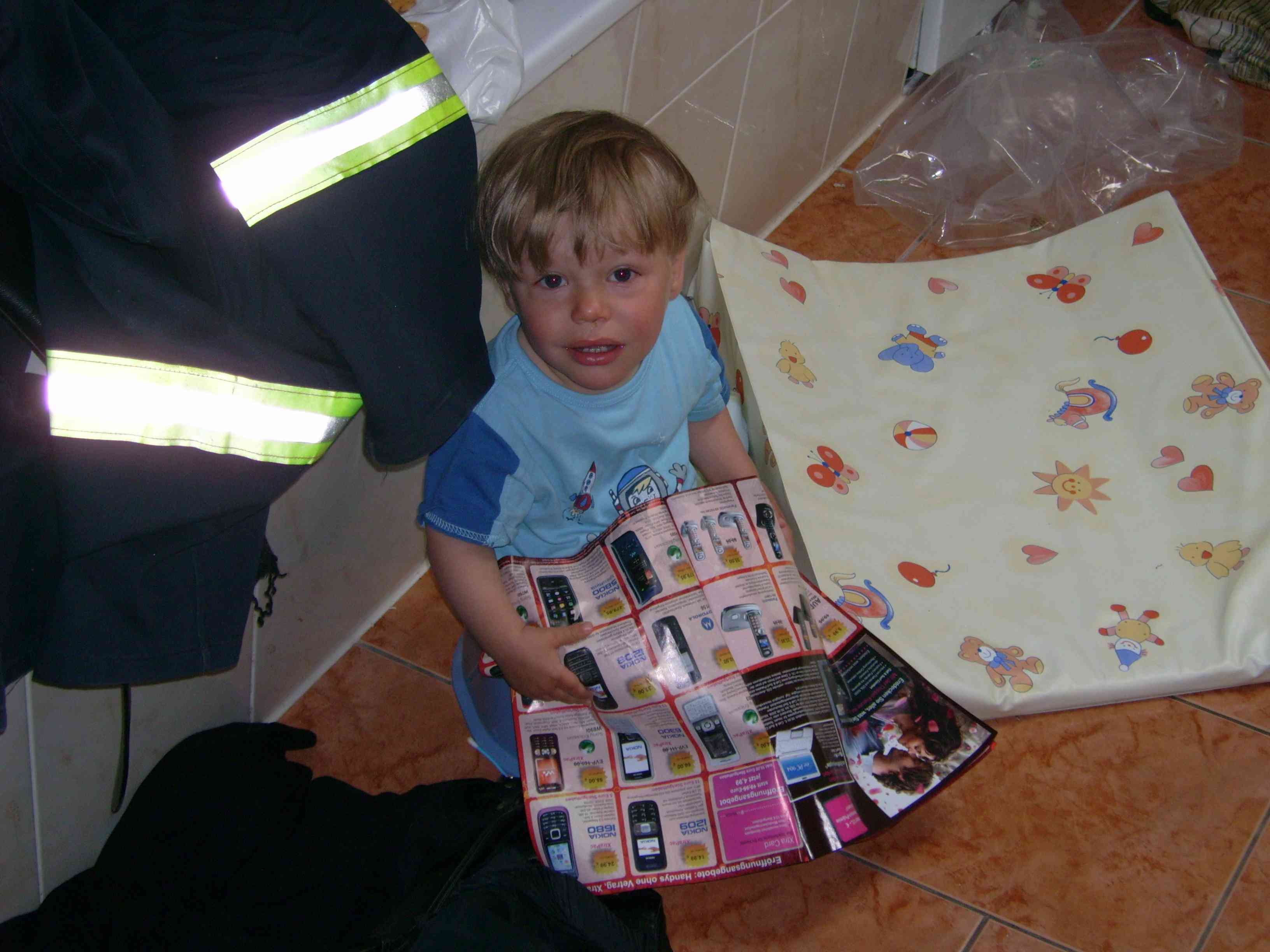 Ich mache eine Menge nach, was Mama und Papa so tun. Heute hab ich mir morgens nach dem Aufstehen ein Stück Zeitung geholt und dann diese auf dem Topf sitzend “gelesen”. Macht Papa ja auch immer.